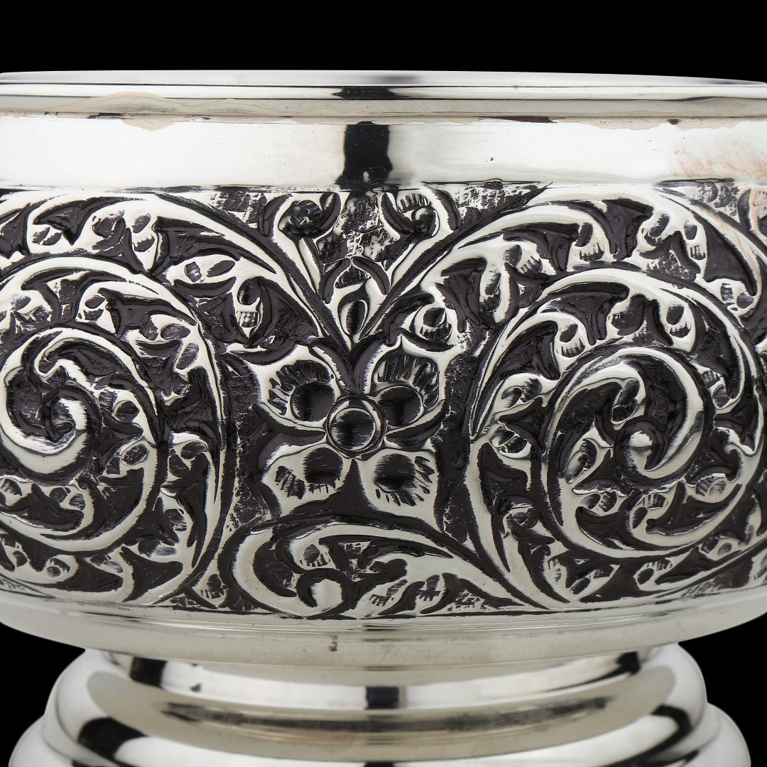 Experience the allure of tradition with this pure silver 925 antique nakashi bowl, exuding timeless charm and intricate craftsmanship. Adorned with delicate nakashi engravings, this bowl captures the essence of a bygone era, adding a touch of vintage elegance to any setting. Whether displayed as a decorative accent or used for serving, its antique patina lends character and depth to its design, making it a cherished heirloom piece for generations to come.