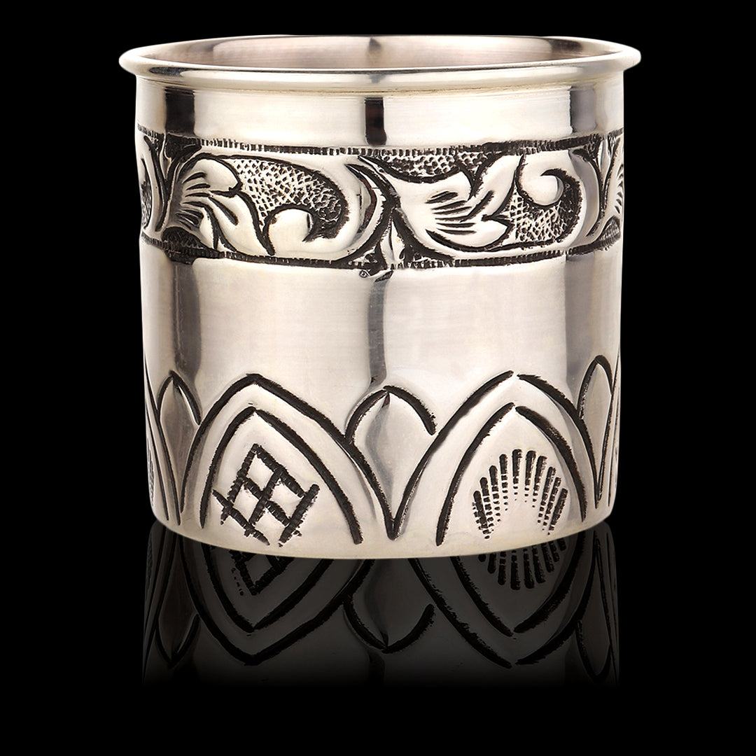 Pure silver 925 Antique Panch Patra with a spoon is a traditional Indian vessel used for religious ceremonies, particularly during the offering of holy water and other liquids to deities. The pure silver Panch Patra with spoon in antique finish is a valuable and significant artifact that represents the rich cultural heritage of India. The use of pure silver adds to the beauty and elegance of the Panch Patra, and the antique finish gives it a vintage charm.
