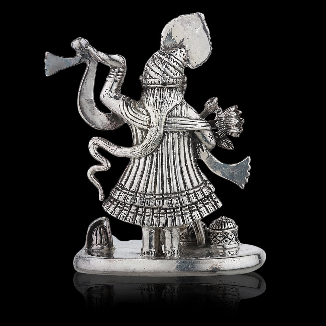 Shree Nath Ji statue made in silver cladding could be used for worship or as a decorative item in a home or temple.